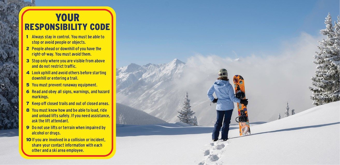 Your Responsibility Code is the foundation of a great day on the slopes at ski areas across the United States. Thank you for helping Colorado Ski Country USA spread the word about ski and snowboard safety: